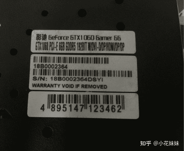 第一,首先是显卡的SN码和外包装盒子上的SN码一致。作为我们购买显卡的外行人来说,其实那不过是一张贴纸,包括显卡背部和外包装上的SN码贴纸,下一点功夫都是可以重新印刷贴上的。只要制作好了贴纸,那么你只需要一个吹风机就可以完美的进行重新粘贴的操作。