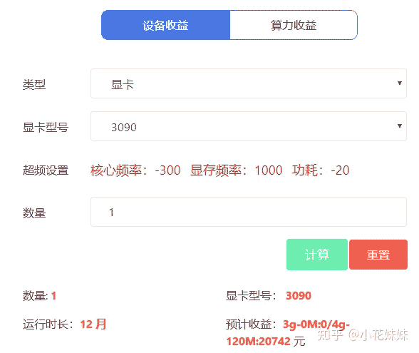 选择你的显卡型号,就可以查询当前根据实时币价的算力收益。